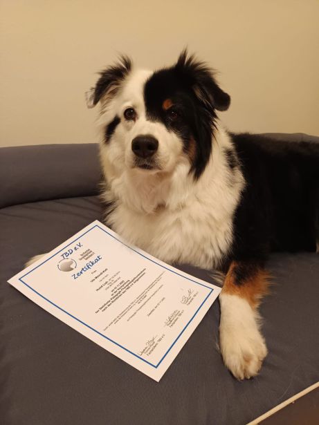 Liah hat im November erneut die Nachprüfung zum Therapiehund bestanden - Glückwunsch